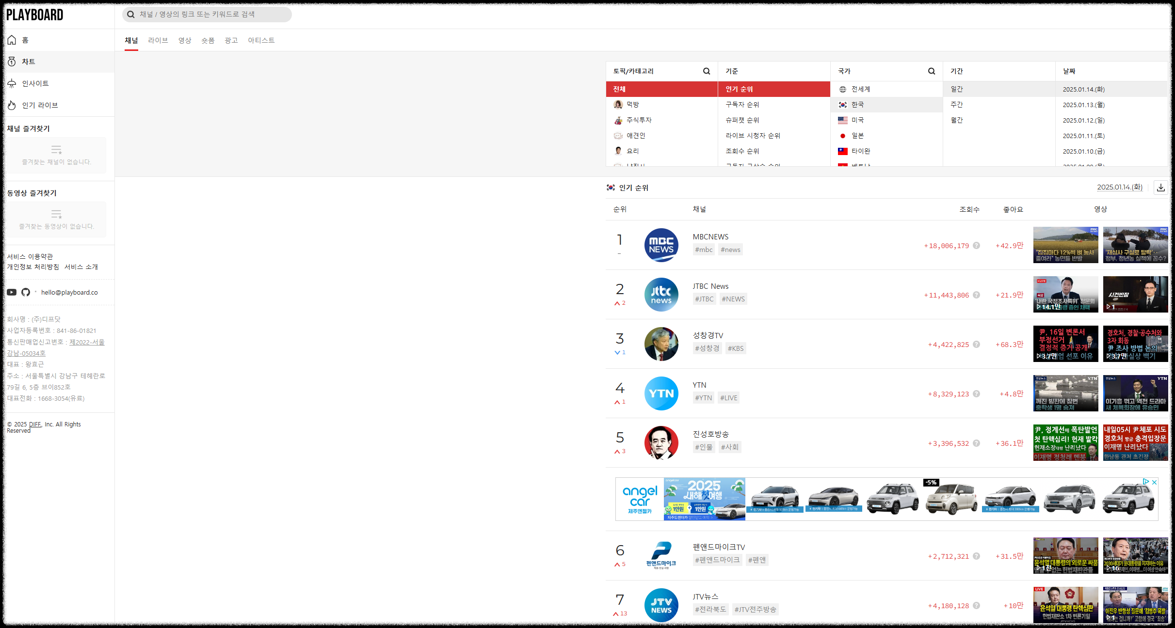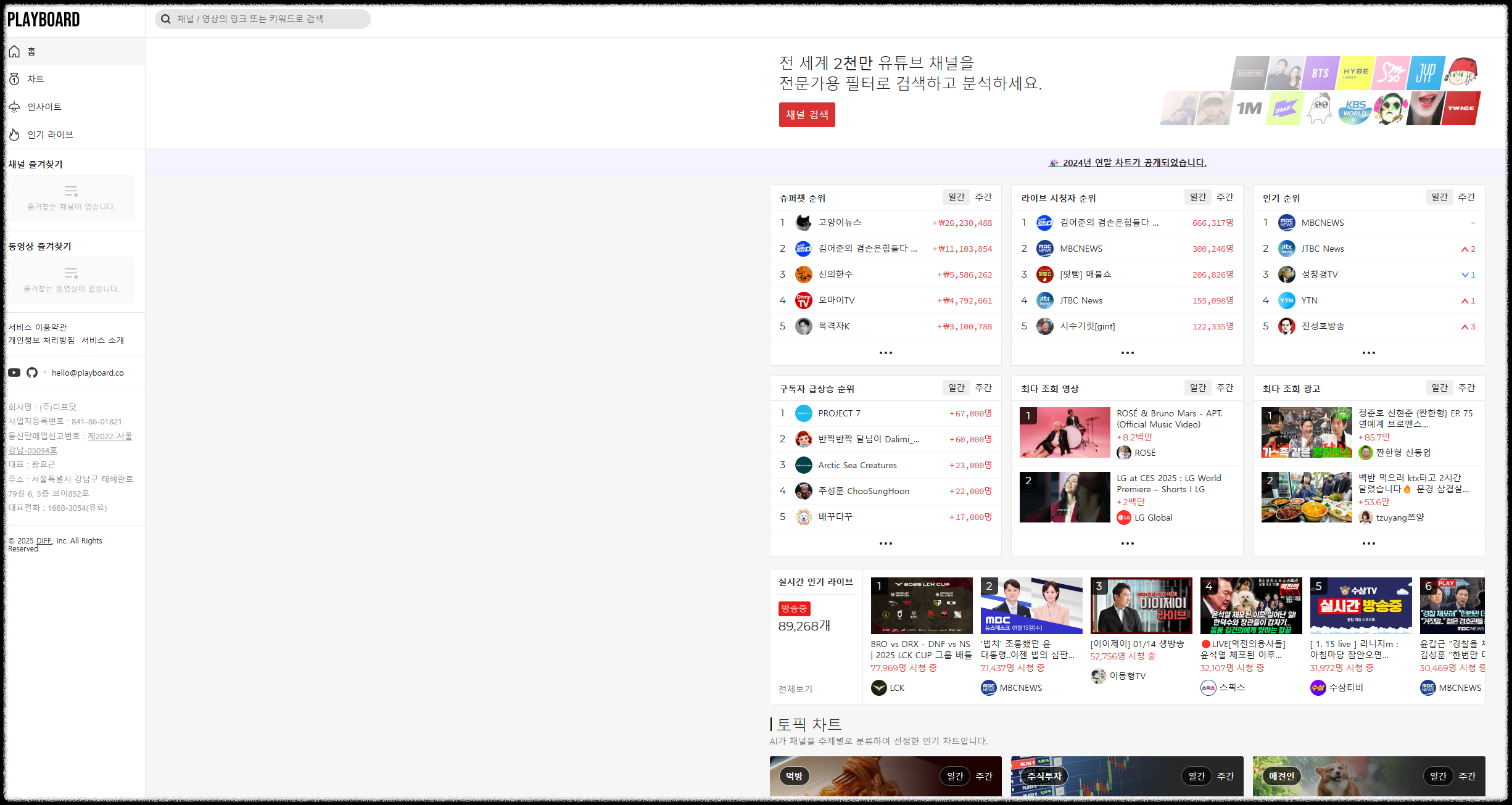 플레이보드 사이트는 현재 인기있는 유튜브 채널을