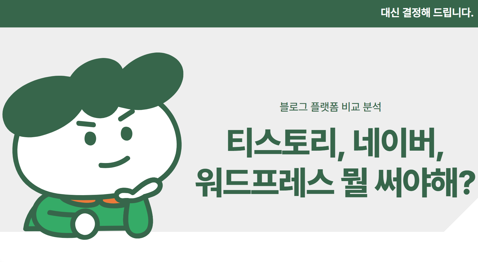 블로그를 하고있거나, 시작한다면 누구나 고민할 수 밖에 없는 어떤 플랫폼에서의 블로그를 운영할까에 대한 고민에 조금이라도 도움이 되었으면 한다.